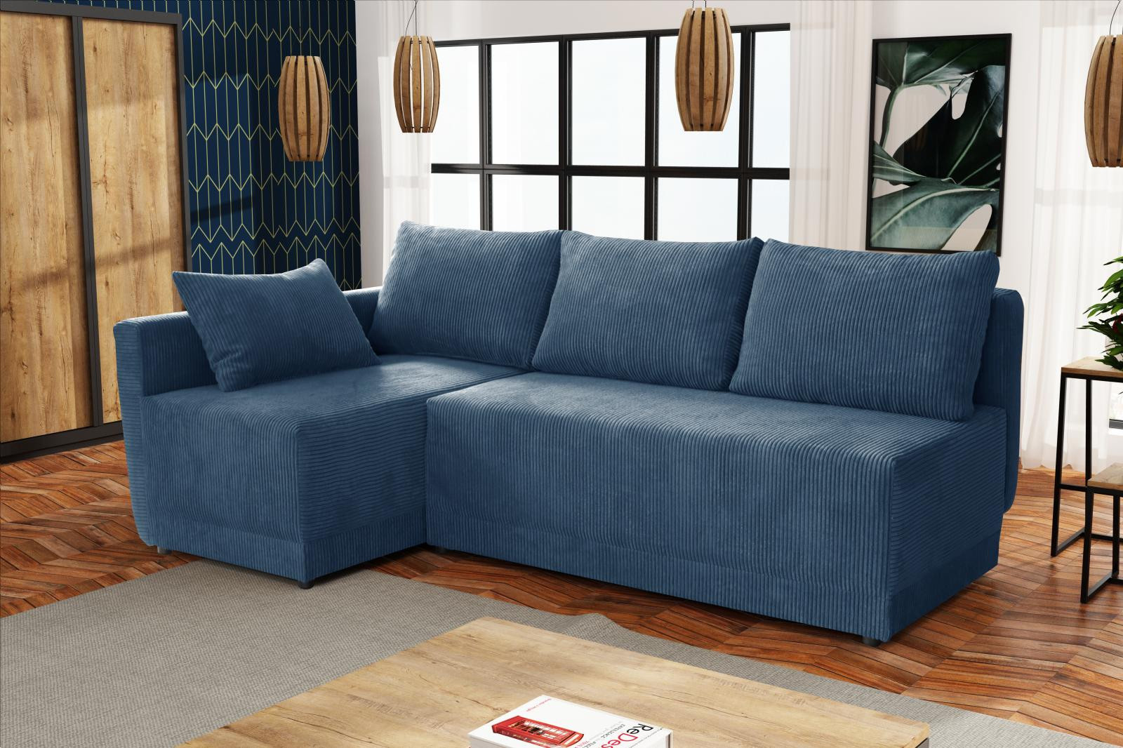 Moderní rohová sedací souprava Vás zaujme svým jednoduchým designem. Součástí jsou polštáře, které dělají sedací soupravu velice pohodlnou. Díky svým rozměrům je vhodná i do menších pokojů. Je praktická, rozklad lze použít k občasnému přespání, plocha lůžka je 198x133 cm. Uvnitř sedací soupravy je úložný prostor, který je možné využít k uložení lůžkovin. Výplň sedáku tvoří pružiny bonell v kombinaci s kvalitní PUR pěnou. Sedací soupravu nabízíme v několika barevných provedeních. Fotografie sedací soupravy v rozkladu jsou pouze ilustrační. Správný barevný odstín je na úvodní fotografii.