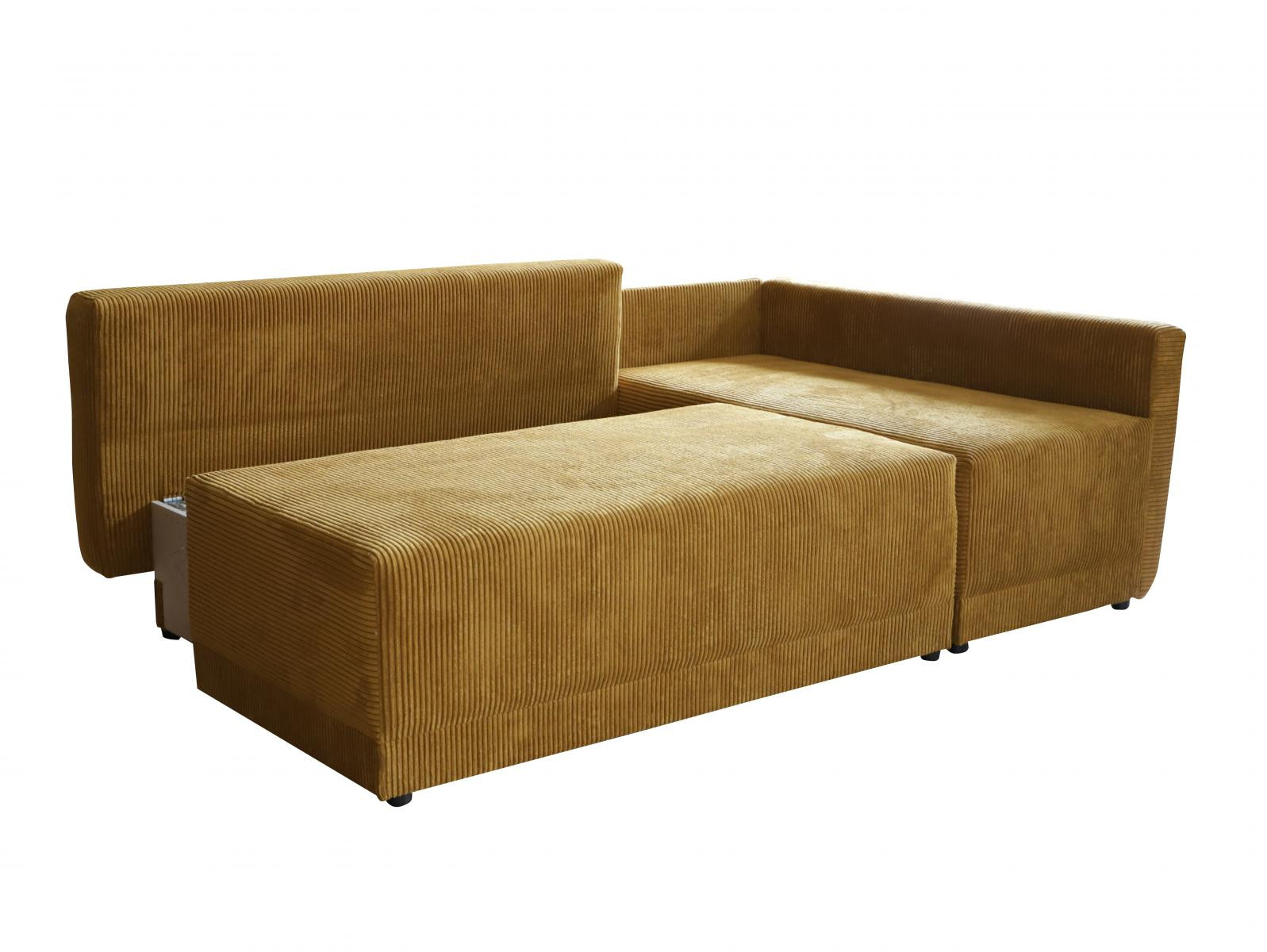 Moderní rohová sedací souprava Vás zaujme svým jednoduchým designem. Součástí jsou polštáře, které dělají sedací soupravu velice pohodlnou. Díky svým rozměrům je vhodná i do menších pokojů. Je praktická, rozklad lze použít k občasnému přespání, plocha lůžka je 198x133 cm. Uvnitř sedací soupravy je úložný prostor, který je možné využít k uložení lůžkovin. Výplň sedáku tvoří pružiny bonell v kombinaci s kvalitní PUR pěnou. Sedací soupravu nabízíme v několika barevných provedeních. Fotografie sedací soupravy v rozkladu jsou pouze ilustrační. Správný barevný odstín je na úvodní fotografii.