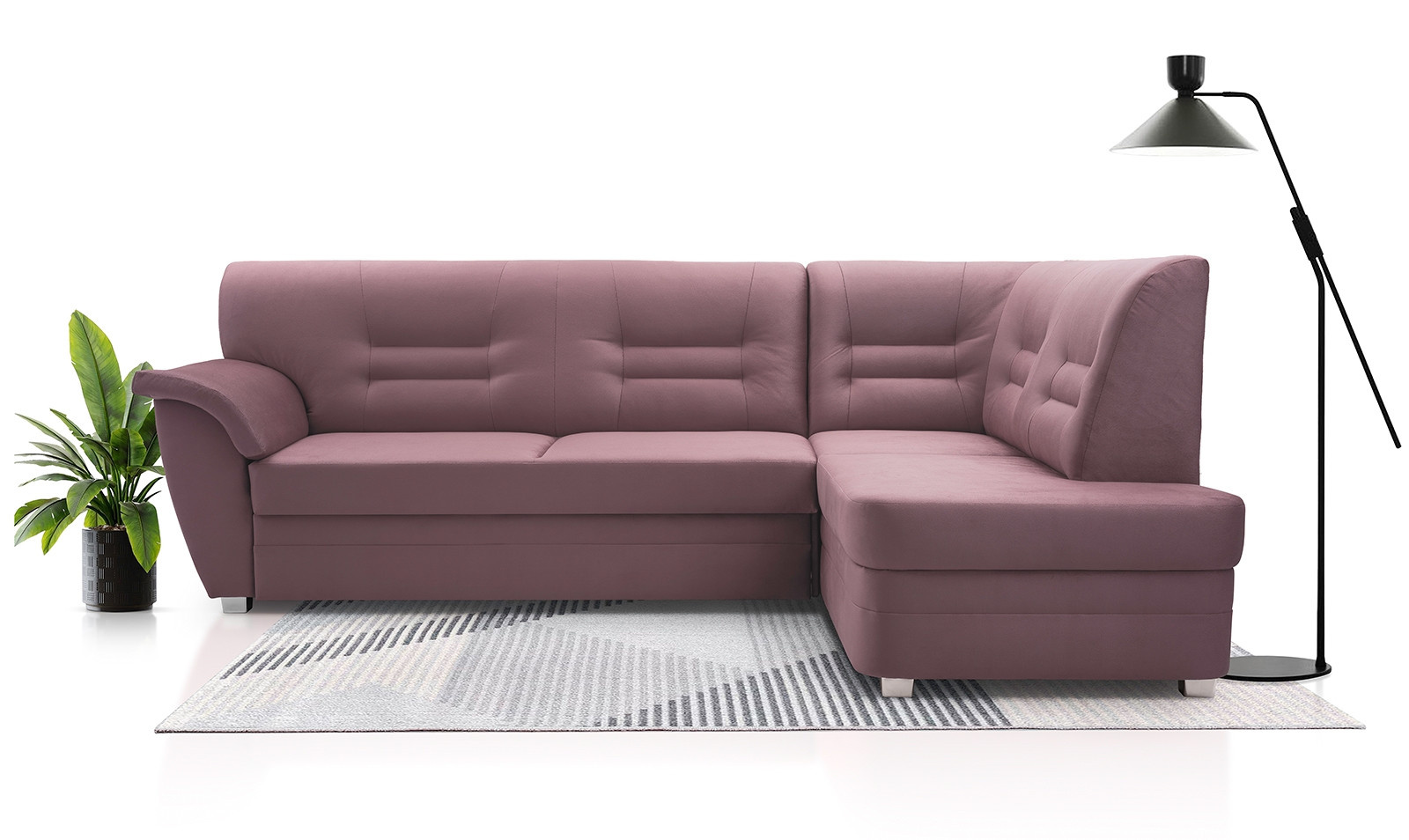 Moderní, rohová sedací souprava Dornia je rozkládací. Jednoduchým rozkladem vzniká lůžko vhodné k příležitostnému spaní. Má uložný prostor, který lze využít například na lůžkoviny. Sedací souprava je pružinová v kombinaci s kvalitní PUR pěnou. Je celočalouněná a je možno ji umístit také do prostoru. Na úvodním obrázku je sedací souprava vyobrazena v pravém provedení. Správná barva je zobrazena na první fotografii. Ostaní fotografie jsou pouze ilustrační. Zobrazení barev na fotografii se může od skutečnosti lišit. Vyobrazené doplňky a dekorace nejsou v ceně.