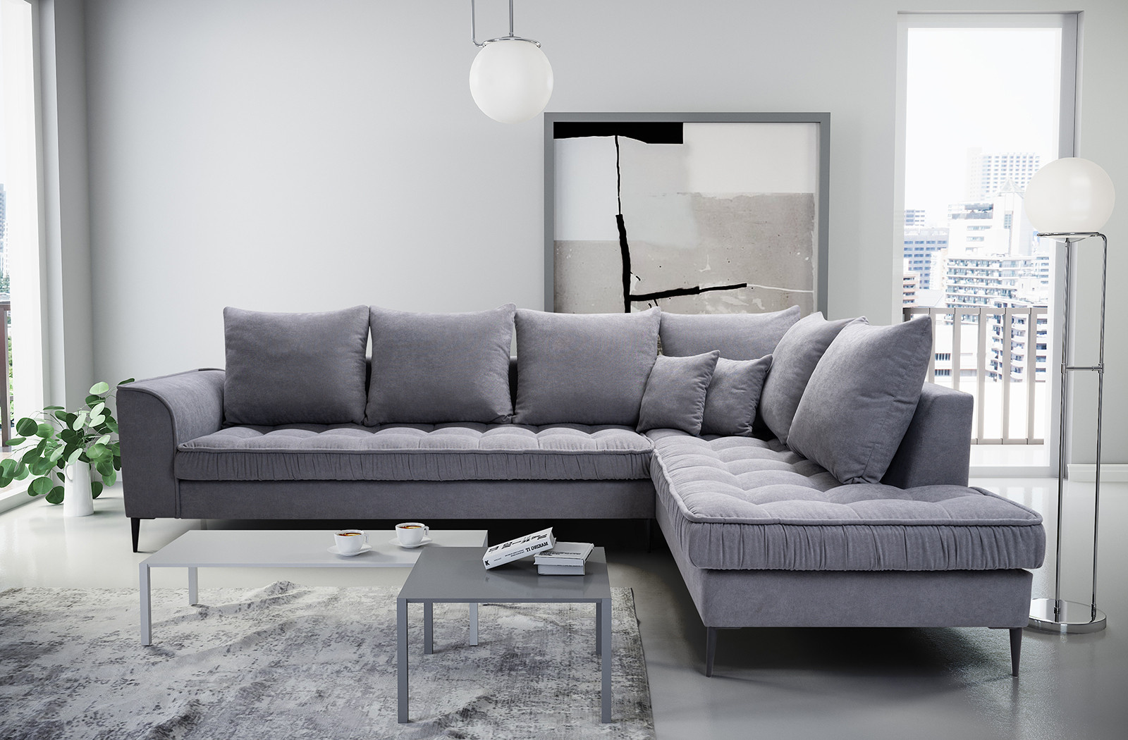 Rohová sedací souprava P Lidie - světle šedá