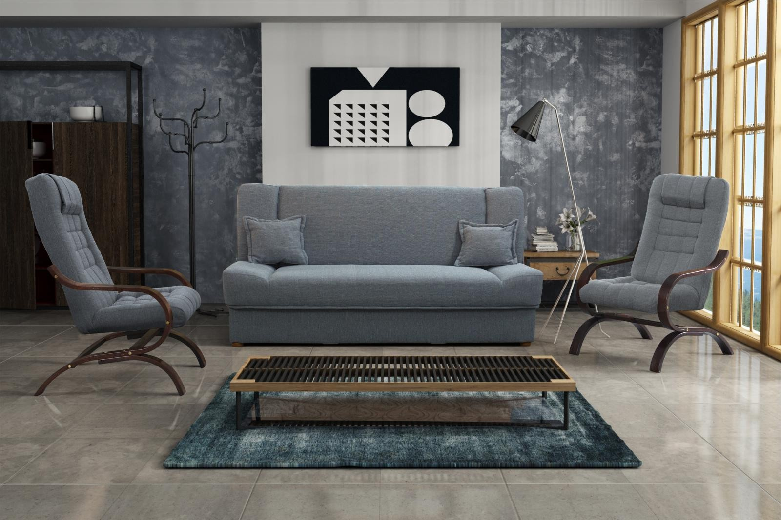 Sedací souprava Palmíra 3F+1+1 šedá/dřevo ořech