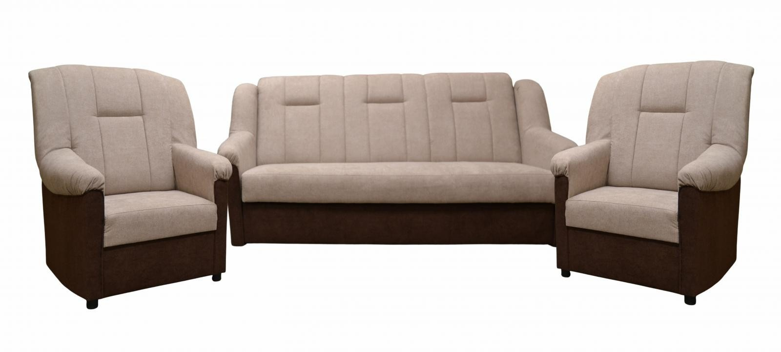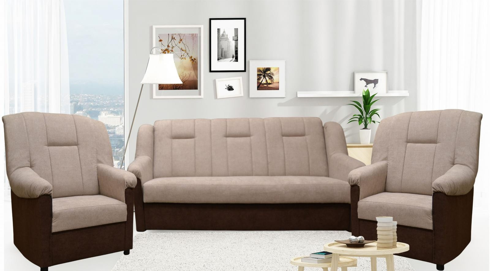 Klasická sedací souprava Panda, je díky svým rozměrům vhodná také do menších pokojů. Sedací souprava je rozkládací a samozřejmostí je i praktický úložný prostor. Jednoduchým rozložením pomocí systému "klik klak", vznikne lůžko vhodné k příležitostnému spaní. Sedací souprava je potažena kvalitní potahovou látkou. Sedací soupravu nabízíme v několika barevných provedeních, takže si určitě vyberet tu pravou pro Váš útulný obývací pokoj.