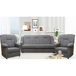 Klasická sedací souprava Panda, je díky svým rozměrům vhodná také do menších pokojů. Sedací souprava je rozkládací a samozřejmostí je i praktický úložný prostor. Jednoduchým rozložením pomocí systému "klik klak", vznikne lůžko vhodné k příležitostnému spaní. Sedací souprava je potažena kvalitní potahovou látkou. Sedací soupravu nabízíme v několika barevných provedeních, takže si určitě vyberet tu pravou pro Váš útulný obývací pokoj.