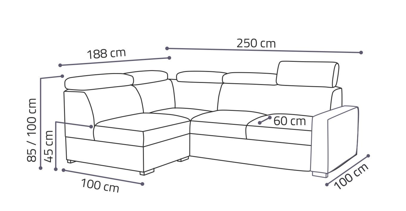 Sedací souprava Petrit se stane příjemným centrem odpočinku, nebo setkání s rodinou a přáteli. Je velmi pohodlná, praktická a nabízí dostatek místa k sezení. Praktickou stránkou sedací soupravy je možnost rozložení k příležitostnému přespání a také nepostradatelný úložný prostor. Pohodlí při sezení zajišťuje výplň sedáků, kterou tvoří kombinace vlnitých pružin s kvalitní PUR pěnou. Při odpočinku, nebo sledování televize Vám zvýší pohodlí polohovací opěrky. Sedací souprava je potažena kvalitní látkou Paros, která je sametově hebká a nežmolkovatí. Je odolná proti UV záření, takže udržuje stálost barev i při denním světle. Sedací soupravu nabízíme v levém i pravém provedení. Vyobrazené doplňky a dekorace nejsou v ceně. Fotografie sedací soupravy v rozkladu jsou pouze ilustrační. Správný barevný odstín je zobrazen na úvodních fotografiích.