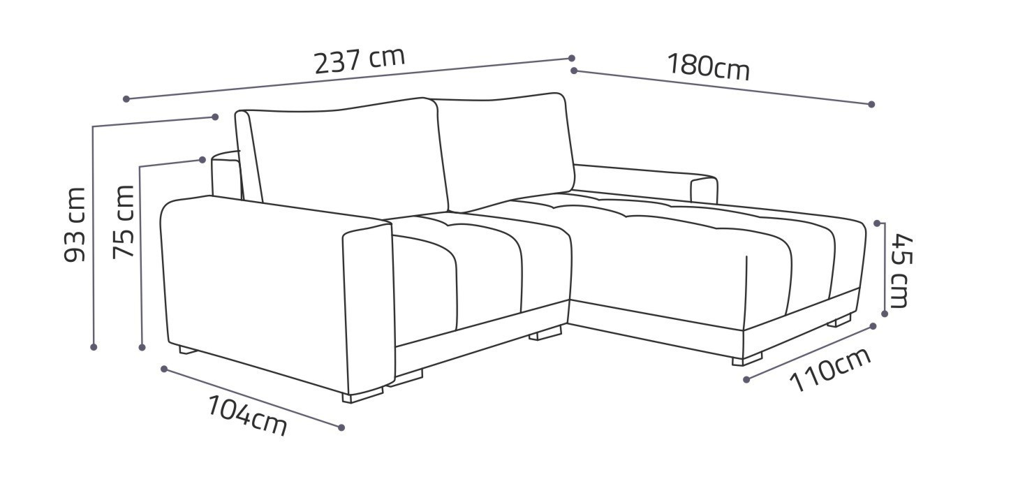 Sedací souprava Pilar je vyrobena v jednoduché elegantní linii, které se hodí do moderního i klasického interiéru. Její velkou předností univerzální použití. Tzn. že si ji můžete podle potřeby sestavit jako levou nebo pravou, což je výhoda při zařizování obývacího pokoje. Nemusíte přemýšlet do jakého rohu sedací soupravu postavíte. Jednoduše si ji podle potřeby přizpůsobíte. Sedací souprava je rozkládací. Jednoduchým rozložením vytvoříte dostatečně velké lůžko k příležitostnému přespání Vaší návštěvy. Samozřejmostí je i praktický úložný prostor, který můžete využít např. na lůžkoviny. Sedací souprava je potažena kvalitní látkou a nabízíme ji v několika odstínech. Výplň sedáků tvoří kombinace vlnitých pružin s kvalitní HR pěnou. V ceně sedací soupravy jsou 2 velké polštáře. Ostatní vyobrazené dekorace nejsou v ceně.