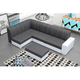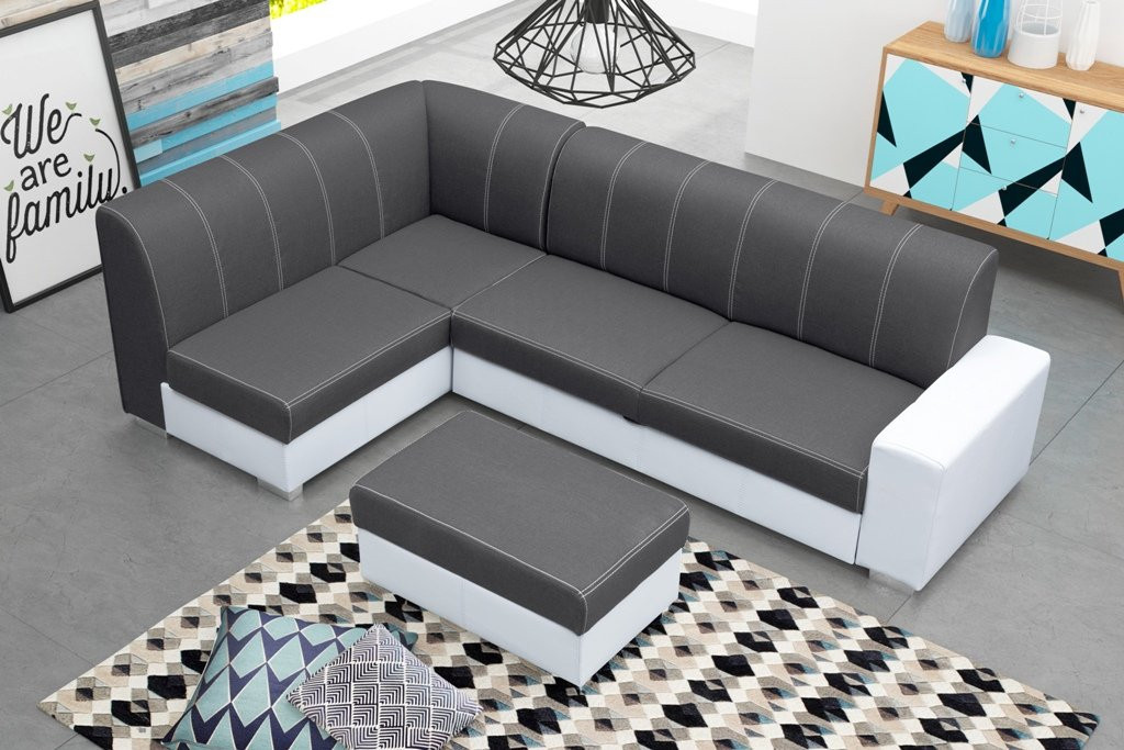 Rohová sedací souprava Rest s taburetem zdarma je vhodná do všech moderních interiérů. Je rozkládací a má praktický úložný prostor. Pohodlnost sezení zajišťuje kombinace pružin faliste s kvalitní PUR pěnou. Jednoduchým rozkladem vznikne lůžko vhodné k příležitostnému spaní. Sedací soupravu nabízíme v kvalitní potahové látce v kombinaci s bílou EKO kůží, a to v několika barevných provedeních, které také najdete v naší nabídce. V ceně sedací soupravy je taburet 55x90 cm. Ostatní vyobrazené dekorace nejsou v ceně.