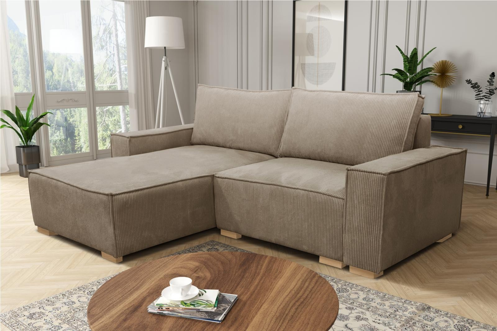Sedací souprava Rija je vyrobena v jednoduchém elegantním designu, který se hodí do všech interiérů. Její velkou předností je univerzální možnost sestavení. Tzn. že podle potřeby můžete mít levou nebo pravou stranu, což je výhoda při zařizování obývacího pokoje. Nemusíte přemýšlet do jakého rohu sedací soupravu postavíte a jednoduše si ji podle potřeby přizpůsobíte. Sedací souprava je rozkládací. Jednoduchým rozložením vytvoříte dostatečně velké lůžko k příležitostnému přespání Vaší návštěvy. Samozřejmostí je i praktický úložný prostor, který můžete využít např. na lůžkoviny. Sedací souprava je potažena kvalitní látkou Poso, která se vyznačuje sametově jemným povrchem a svým typickým vzhledem připomíná manšestr. Výplň sedáků tvoří kombinace vlnitých pružin s kvalitní HR pěnou. Pro pohodlí při sezení a odpočinku, je sedací souprava vybavena 2 objemnými polštáři. Správná barva potahové látky je zobrazena na první a druhé fotografii. Ostatní fotografie jsou pouze ilustrační.