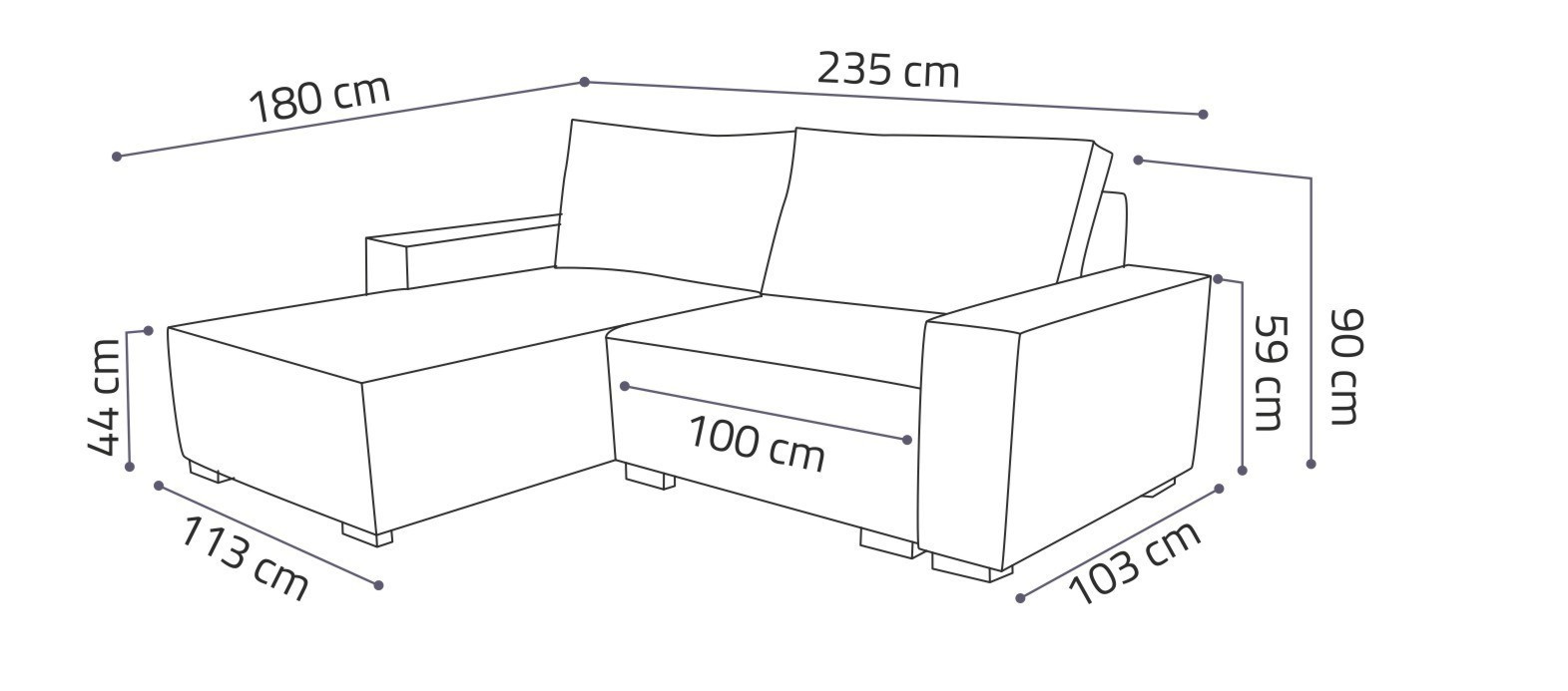 Sedací souprava Rija je vyrobena v jednoduchém elegantním designu, který se hodí do všech interiérů. Její velkou předností je univerzální možnost sestavení. Tzn. že podle potřeby můžete mít levou nebo pravou stranu, což je výhoda při zařizování obývacího pokoje. Nemusíte přemýšlet do jakého rohu sedací soupravu postavíte a jednoduše si ji podle potřeby přizpůsobíte. Sedací souprava je rozkládací. Jednoduchým rozložením vytvoříte dostatečně velké lůžko k příležitostnému přespání Vaší návštěvy. Samozřejmostí je i praktický úložný prostor, který můžete využít např. na lůžkoviny. Sedací souprava je potažena kvalitní látkou Poso, která se vyznačuje sametově jemným povrchem a svým typickým vzhledem připomíná manšestr. Výplň sedáků tvoří kombinace vlnitých pružin s kvalitní HR pěnou. Pro pohodlí při sezení a odpočinku je sedací souprava vybavena 2 objemnými polštáři.