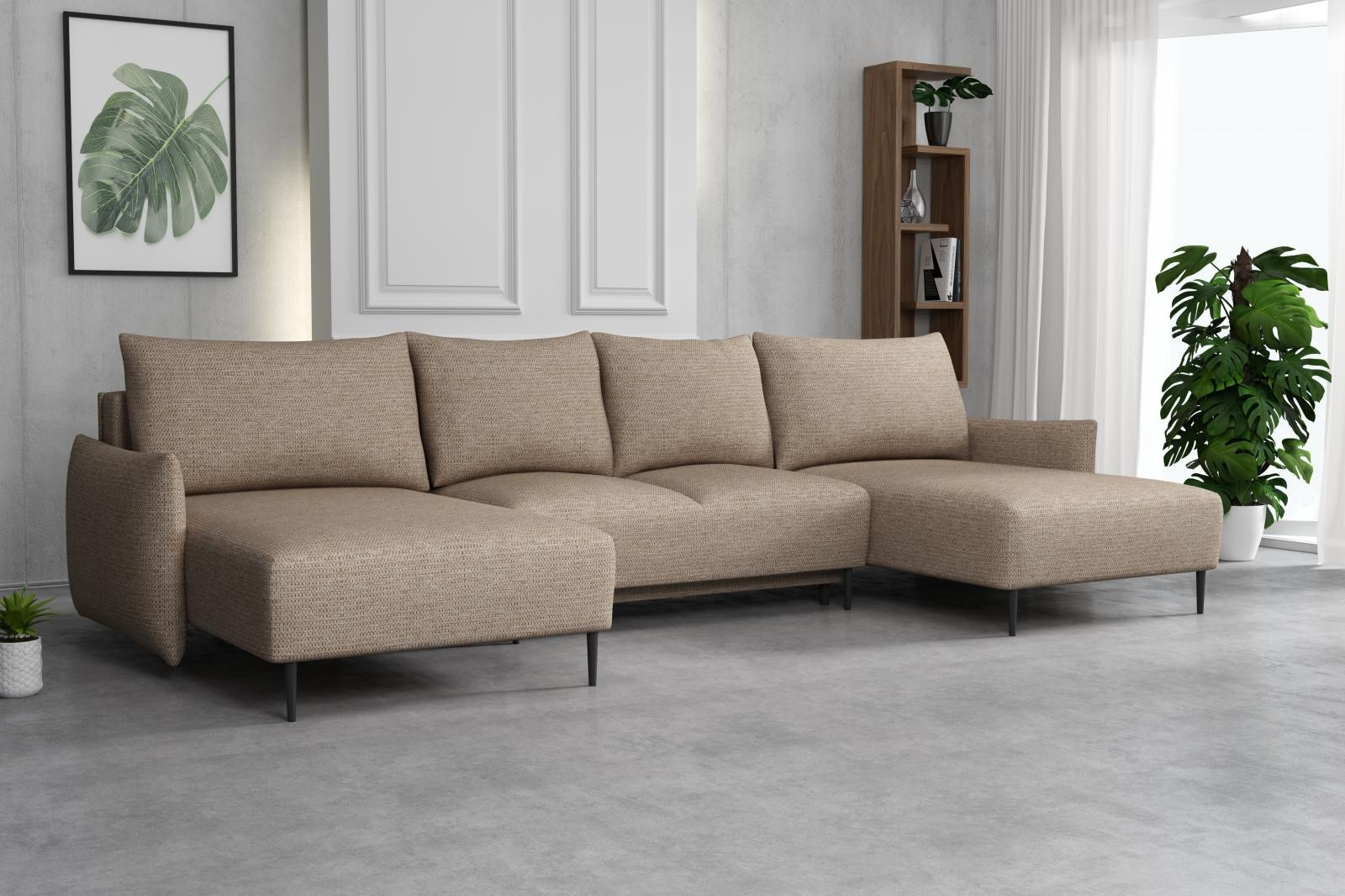 Sedací souprava Santino je vyrobena v jednoduchém elegantním designu, který se hodí do všech interiérů. Sedací souprava je rozkládací, jednoduchým rozložením vytvoříte dostatečně velké lůžko k příležitostnému přespání Vaší návštěvy. Samozřejmostí je i praktický úložný prostor, který můžete využít např. na lůžkoviny. Sedací souprava je potažena kvalitní látkou Aragon, která je vyrobena z vysoce kvalitní příze, je extrémně měkká a příjemná na dotek. Látka je odolná před pronikáním vlhkosti a tekutin, snadno se čistí a udržuje v perfektním stavu. Výplň sedáků tvoří kombinace vlnitých pružin s kvalitní HR pěnou. Pro pohodlí při sezení a odpočinku, je sedací souprava vybavena 4 objemnými polštáři. Správná barva potahové látky je zobrazena na první a druhé fotografii. Ostatní fotografie jsou pouze ilustrační.
