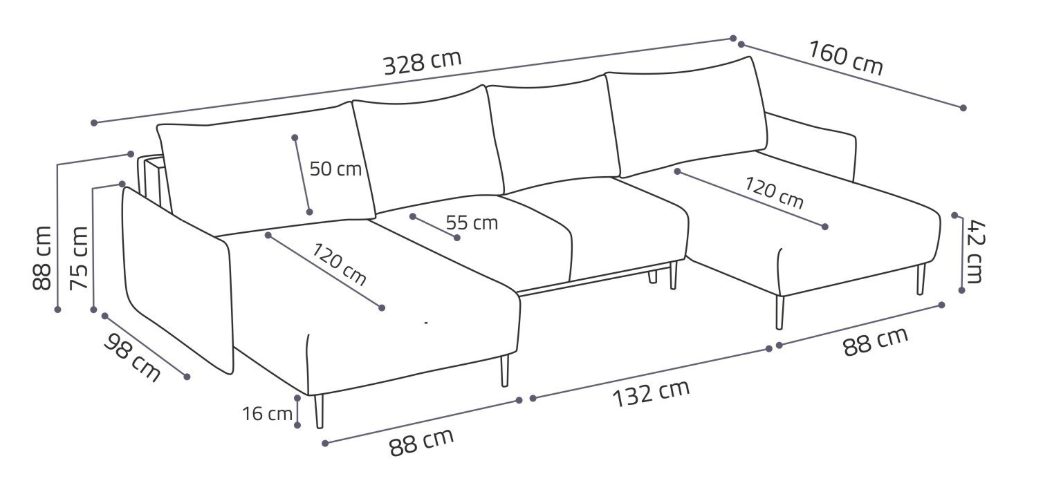 Sedací souprava Santino je vyrobena v jednoduchém elegantním designu, který se hodí do všech interiérů. Sedací souprava je rozkládací, jednoduchým rozložením vytvoříte dostatečně velké lůžko k příležitostnému přespání Vaší návštěvy. Samozřejmostí je i praktický úložný prostor, který můžete využít např. na lůžkoviny. Sedací souprava je potažena kvalitní látkou Velo, která je vyrobena z vysoce kvalitní příze, je extrémně měkká a příjemná na dotek. Látka je odolná před pronikáním vlhkosti a tekutin, snadno se čistí a udržuje v perfektním stavu. Výplň sedáků tvoří kombinace vlnitých pružin s kvalitní HR pěnou. Pro pohodlí při sezení a odpočinku, je sedací souprava vybavena 4 objemnými polštáři. Správná barva potahové látky je zobrazena na první a druhé fotografii. Ostatní fotografie jsou pouze ilustrační.