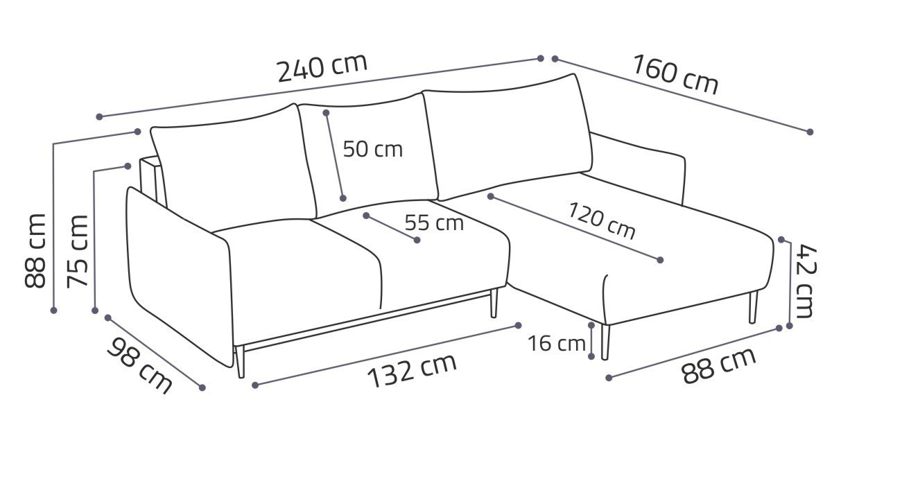Sedací souprava Santino je vyrobena v jednoduchém elegantním designu, který se hodí do všech interiérů. Její velkou předností je univerzální možnost sestavení. Tzn. že podle potřeby můžete mít levou nebo pravou stranu, což je výhoda při zařizování obývacího pokoje. Nemusíte přemýšlet do jakého rohu sedací soupravu postavíte a jednoduše si ji podle potřeby přizpůsobíte. Sedací souprava je rozkládací. Jednoduchým rozložením vytvoříte dostatečně velké lůžko k příležitostnému přespání Vaší návštěvy. Samozřejmostí je i praktický úložný prostor, který můžete využít např. na lůžkoviny. Sedací souprava je potažena kvalitní látkou Velo, která je vyrobena z vysoce kvalitní příze, je extrémně měkká a příjemná na dotek. Látka je odolná před pronikáním vlhkosti a tekutin, snadno se čistí a udržuje v perfektním stavu. Výplň sedáků tvoří kombinace vlnitých pružin s kvalitní HR pěnou. Pro pohodlí při sezení a odpočinku, je sedací souprava vybavena 3 objemnými polštáři. Správná barva potahové látky je zobrazena na první a druhé fotografii. Ostatní fotografie jsou pouze ilustrační.