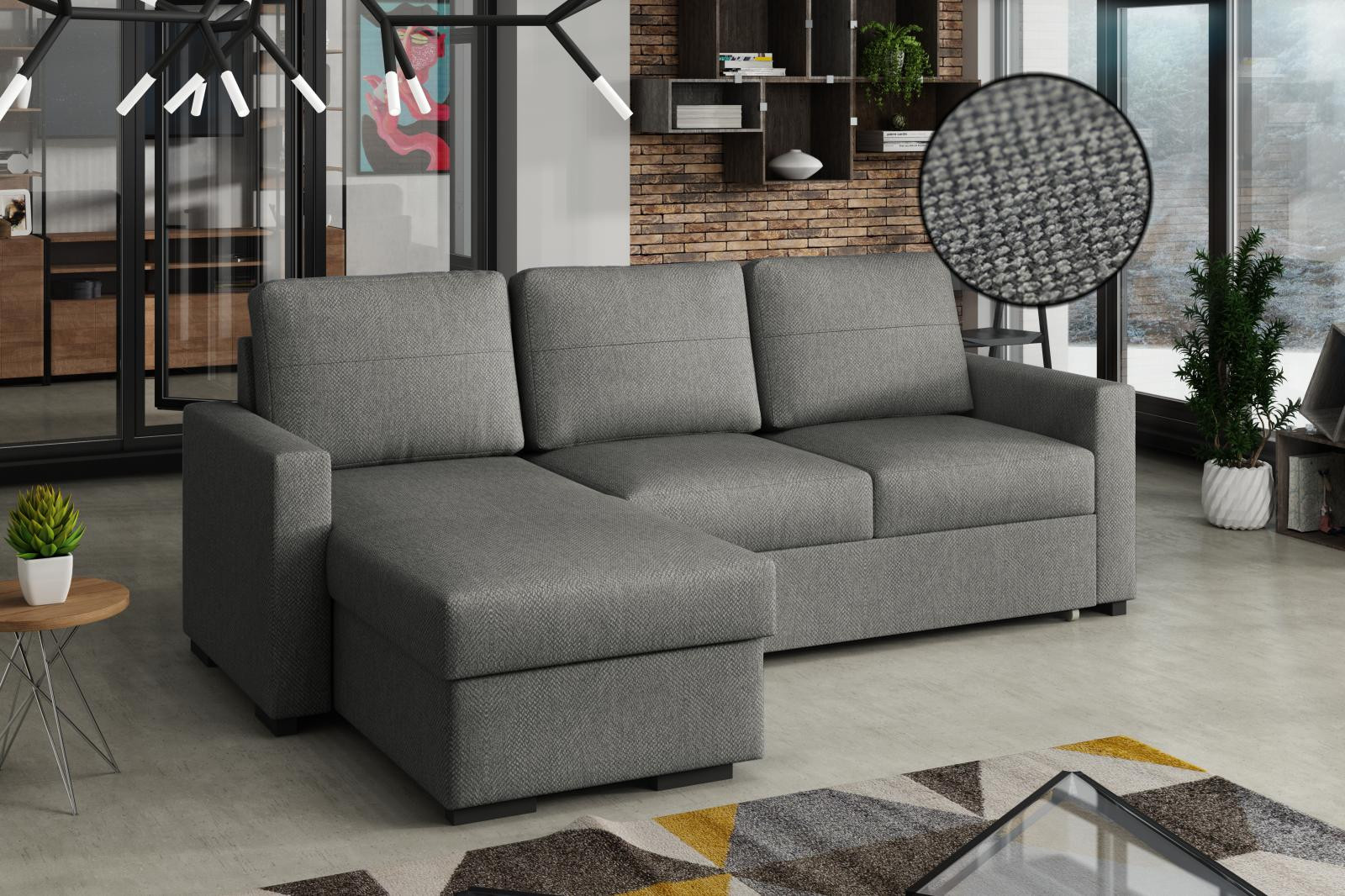 Tomáš je moderní rohová sedací souprava s nadčasovým designem. Její předností je pohodlí, praktičnost a univerzální použití. Můžete si ji podle potřeby sestavit jako levou nebo pravou, což je výhoda při zařizování obývacího pokoje. Nemusíte přemýšlet do jakého rohu postavíte sedací soupravu, jednoduše ji podle potřeby přizpůsobíte. Pohodlí při sezení zajišťuje kombinace pružin faliste s kvalitní PUR pěnou a velké opěrné polštáře, které jsou odnímatelné, takže si je můžete přizpůsobit svým potřebám. Praktickou stránkou sedací soupravy je úložný prostor a možnost rozložení k občasnému přespání Vaší návštěvy. Sedací souprava je potažena látkou jednobarevnou látkou a v nabídce najdete více barevných variant. V ceně sedací soupravy jsou 3 velké opěrné polštáře. Ostatní vyobrazené dekorace nejsou v ceně. Zobrazení barev produktu na fotografii se může nepatrně lišit od skutečnosti. Správná barva potahové látky je zobrazena na první fotografii. Ostatní fotografie jsou pouze ilustrační.
