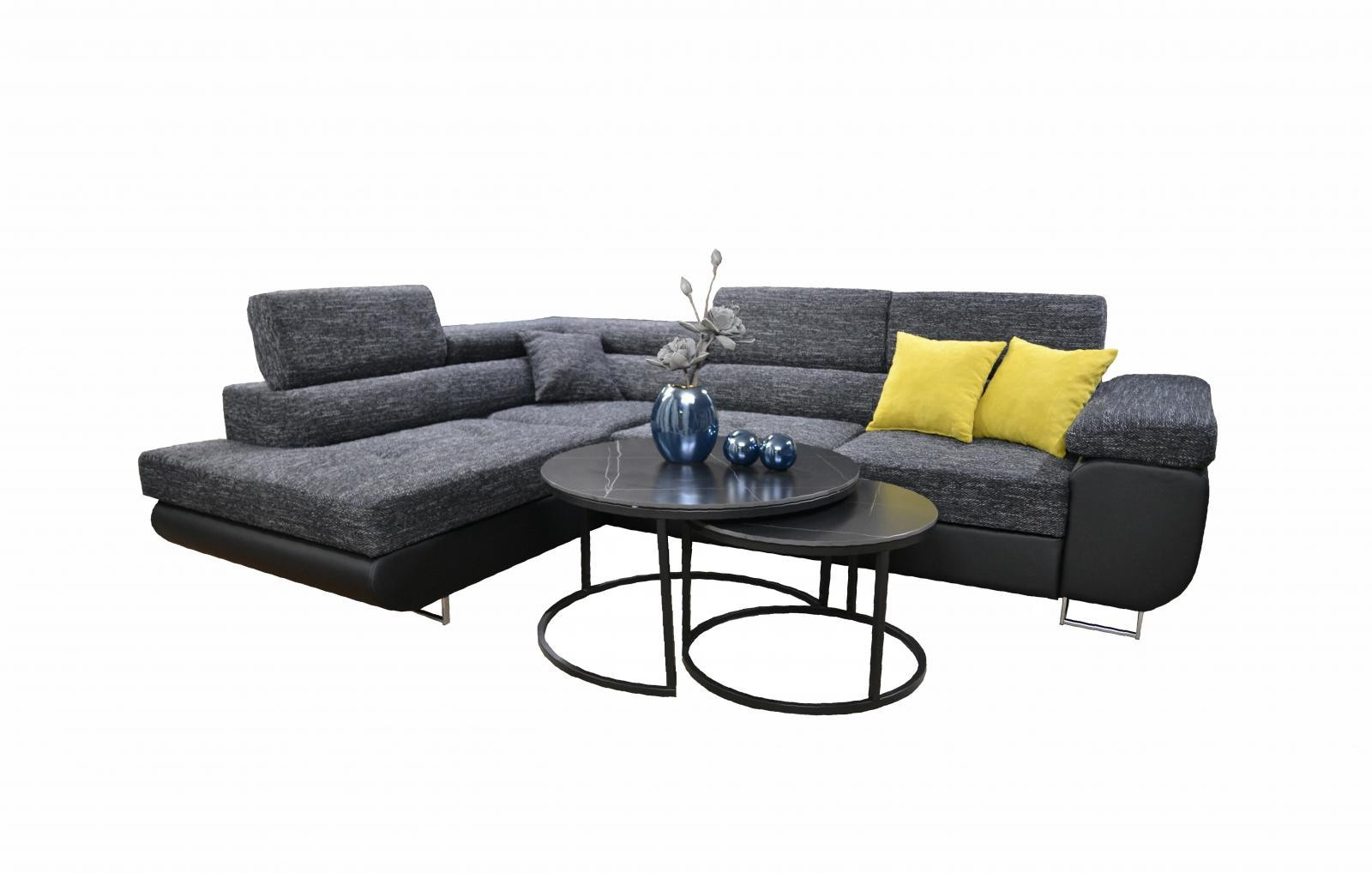 Sedací souprava Tony se stane příjemným centrem odpočinku, nebo setkání s rodinou a přáteli. Je velmi pohodlná, praktická a nabízí dostatek místa k sezení. Praktickou stránku sedací soupravy zajišťuje možnost rozložení k příležitostnému přespání a také nepostradatelný úložný prostor. Pohodlí při sezení zajišťuje výplň sedáků, kterou tvoří kombinace pružin s kvalitní PUR pěnou. Při odpočinku, nebo sledování televize Vám zvýší pohodlí polohovací opěrky. Sedací souprava je potažena kvalitní látkou a bude dodána v kombinaci barev, které jsou na fotografiích. Sedací soupravu nabízíme v levém i pravém provedení. Vyobrazené doplňky a dekorace nejsou v ceně.