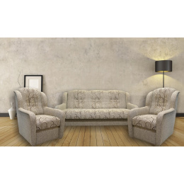 Ušák je stále velmi oblíbeným klasickým modelem sedací soupravy v provedení 3F+1+1. Je velmi pohodlná a zároveň praktická. Sedací souprava je rozkládací a samozřejmostí je i úložný prostor. Jednoduchým rozkladem pomocí systému "klik klak" vznikne lůžko k příležitostnému přespání Vaší návštěvy. Sedací souprava je potažena kvalitní látkou a nabízíme ji v několika barvách, ze kterých si určitě vyberete tu nejvhodnější pro Váš obývací pokoj. Výpň sedáků tvoří pružiny v kombinaci s kvalitní PUR pěnou. Tato kombinace zajistí velmi pohodlné sezení. Cena sedací soupravy je uvedena za rozkládací trojsed a dvě křesla. Zobrazení barev na fotografii se může od skutečnosti lišit.