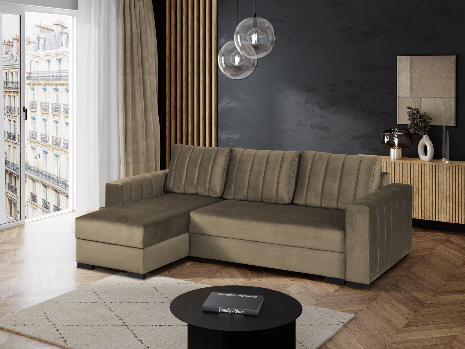 Verča je moderní rohová sedací souprava s nadčasovým designem. Její předností je pohodlí, praktičnost a univerzální použití. Můžete si ji podle potřeby sestavit jako levou nebo pravou, což je výhoda při zařizování obývacího pokoje. Nemusíte přemýšlet do jakého rohu postavíte sedací soupravu, jednoduše ji podle potřeby přizpůsobíte. Pohodlí při sezení zajišťuje kombinace pružin faliste s kvalitní PUR pěnou a velké opěrné polštáře, které jsou odnímatelné, takže si je můžete přizpůsobit svým potřebám. Praktickou stránkou sedací soupravy je úložný prostor a možnost rozložení k občasnému přespání Vaší návštěvy. V ceně sedací soupravy jsou 3 velké opěrné polštáře. Ostatní vyobrazené dekorace nejsou v ceně. Zobrazení barev na fotografii se může nepatrně lišit od skutečnosti. Správná barva potahové látky je zobrazena na první fotografii. Fotografie sedací soupravy v rozkladu je pouze ilustrační.