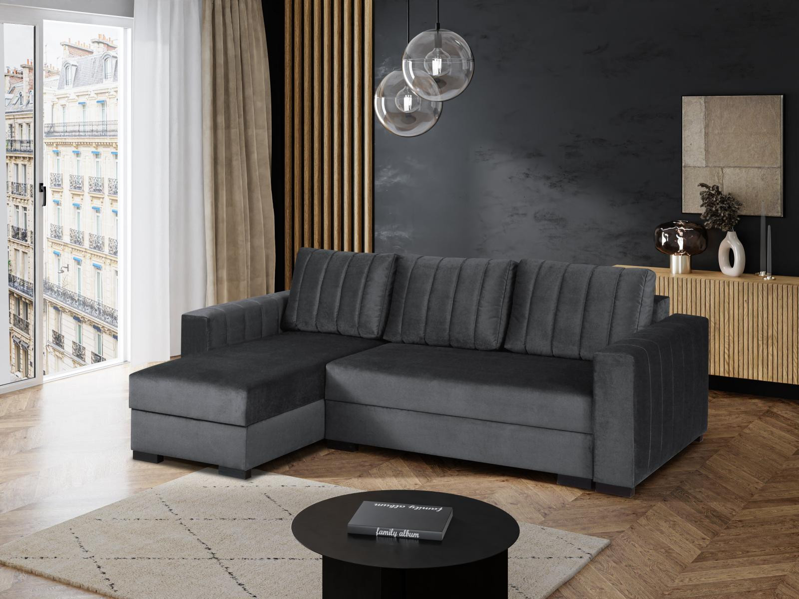 Rohová sedací souprava Verča UNI tmavě šedá