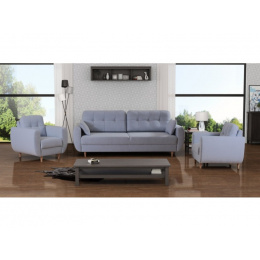 VERDI je moderní sedací souprava - pohovka s dvěmi křesly . Sedací část je vyrobena z vlnitých pružin a dekorativní prvky jsou z přírodního dřeva. Moderní mechanismus umožňuje umístit sedačku do spací polohy lehkým zvednutím sedadla a jeho posunutím dopředu. Ve srovnání s tradičními řešeními tohoto typu tato konstrukce eliminuje riziko poškrábání podlahy.