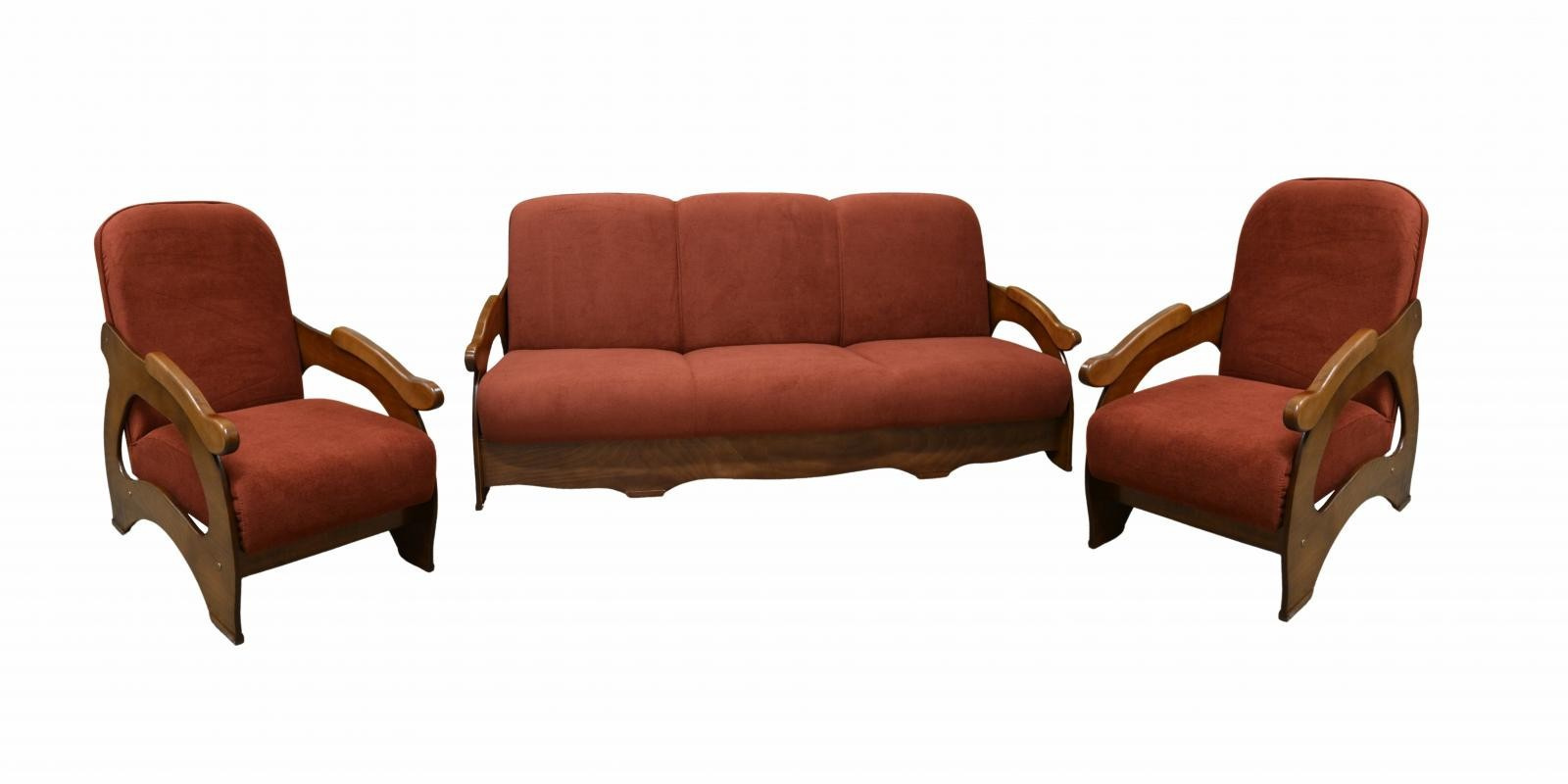 Sedací souprava Viki s rozkládacím trojsedem a dvěma křesly. Sedací souprava má úložný prostor a jednoduchým rozkladem vznikne lůžko 188x130 cm na občasné přespání pro dvě osoby. Výplň sedáku tvoří pružiny bonell v kombinaci s kvalitní PUR pěnou. Sedací souprava je očalouněná kvalitní látkou Velo, která je velmi příjemná na dotek a je odolná proti vsakování tekutin. Čalounění v kombinaci se dřevem působí velice stylově. Bočnice jsou vyrobené z bukového masivu, moření je možné v různých barevních odstínech. Sedací soupravu lze objednat i v jiných barevných provedeních (viz. vzorník látek níže). Odstíny nebo kresba dřeva nemusí přesně odpovídat vyobrazeným vzorkům.