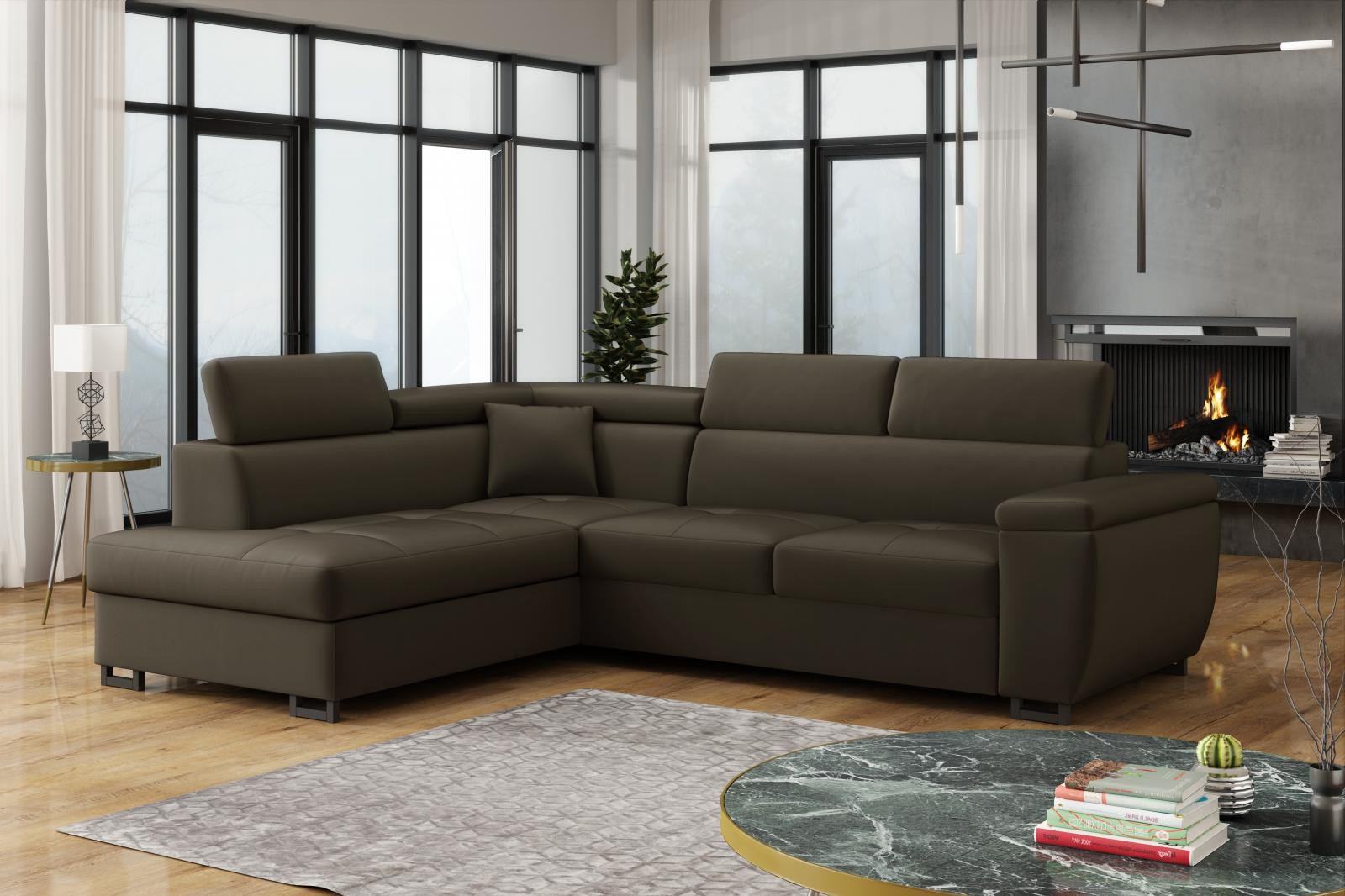 Sedací souprava Wiliam je vyrobena v nadčasovém designu, který se hodí do každého interiéru. Spojuje v sobě 2 důležité prvky, které nesmí chybět žádné sedací soupravě. Jsou to pohodlí a praktičnost. Praktickou stránkou této sedací soupravy je možnost rozložení pro příležitostné přespání návštěvy a nepostradatelný úložný prostor. Výplň sedáků tvoří kvalitní PUR pěna v kombinaci s vlnitými pružinami. Pohodlí při odpočinku, sledování televize, nebo posezení s přáteli zvyšují polohovací opěrky, které si můžete nastavit tak, aby pro vás sezení bylo co nejpohodlnější. Sedací souprava je potažena elegantní látkou a je celočalouněná, takže ji můžete umístit i do prostoru. Nabízíme ji v levém i pravém provedení a v několika barvách. Vyobrazené doplňky a dekorace nejsou v ceně. Vzorek látky, ve které bude sedací souprava dodána, je vyobrazen v doplňkových fotografiích. Fotografie sedací soupravy v rozkladu jsou pouze ilustrační.