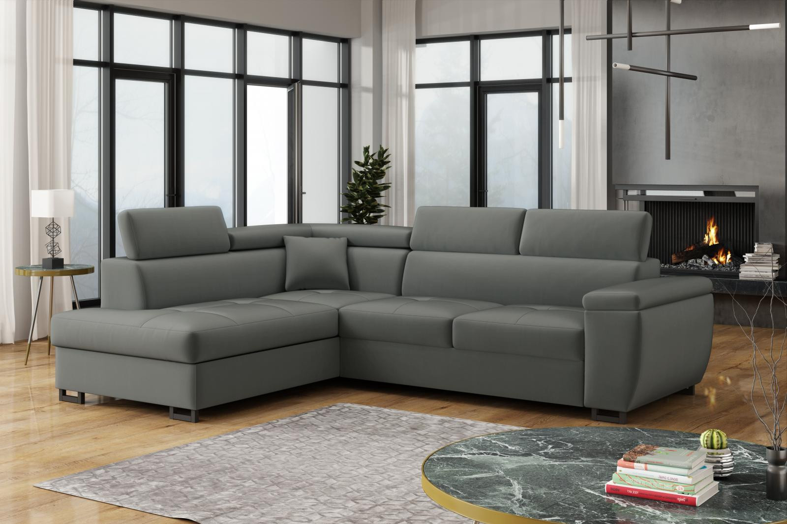 Sedací souprava Wiliam je vyrobena v nadčasovém designu, který se hodí do každého interiéru. Spojuje v sobě 2 důležité prvky, které nesmí chybět žádné sedací soupravě. Jsou to pohodlí a praktičnost. Praktickou stránkou této sedací soupravy je možnost rozložení pro příležitostné přespání návštěvy a nepostradatelný úložný prostor. Výplň sedáků tvoří kvalitní PUR pěna v kombinaci s vlnitými pružinami. Pohodlí při odpočinku, sledování televize, nebo posezení s přáteli zvyšují polohovací opěrky, které si můžete nastavit tak, aby pro vás sezení bylo co nejpohodlnější. Sedací souprava je potažena elegantní látkou a je celočalouněná, takže ji můžete umístit i do prostoru. Nabízíme ji v levém i pravém provedení a v několika barvách. Vyobrazené doplňky a dekorace nejsou v ceně. Vzorek látky, ve které bude sedací souprava dodána, je vyobrazen v doplňkových fotografiích. Fotografie sedací soupravy v rozkladu jsou pouze ilustrační.