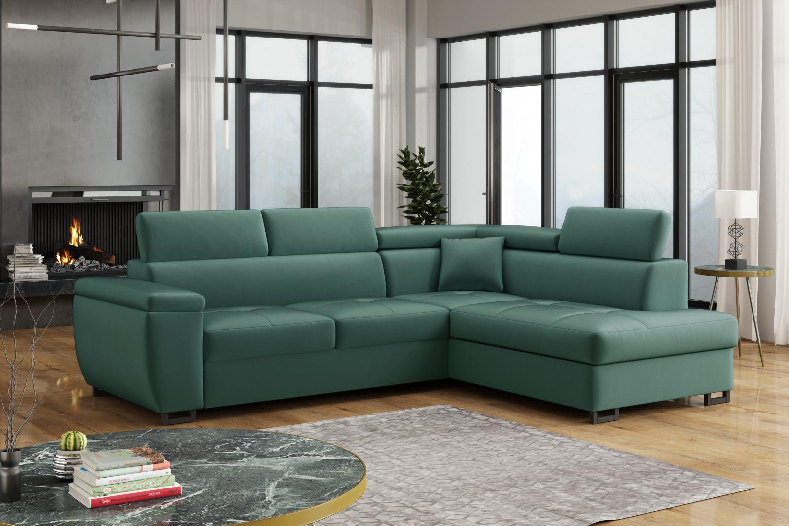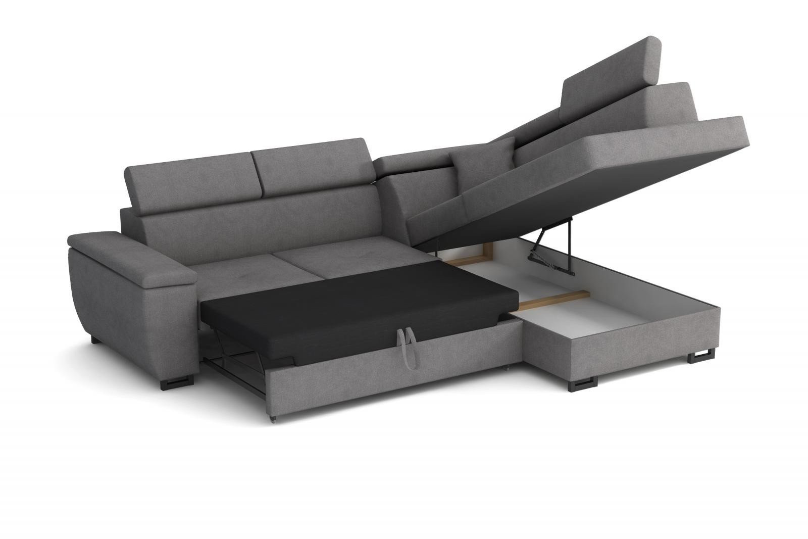 Sedací souprava Wiliam je vyrobena v nadčasovém designu, který se hodí do každého interiéru. Spojuje v sobě 2 důležité prvky, které nesmí chybět žádné sedací soupravě. Jsou to pohodlí a praktičnost. Praktickou stránkou této sedací soupravy je možnost rozložení pro příležitostné přespání návštěvy a nepostradatelný úložný prostor. Výplň sedáků tvoří kvalitní PUR pěna v kombinaci s vlnitými pružinami. Pohodlí při odpočinku, sledování televize, nebo posezení s přáteli zvyšují polohovací opěrky, které si můžete nastavit tak, aby pro vás sezení bylo co nejpohodlnější. Sedací souprava je potažena elegantní látkou a je celočalouněná, takže ji můžete umístit i do prostoru. Nabízíme ji v levém i pravém provedení a v několika barvách. Vyobrazené doplňky a dekorace nejsou v ceně. Vzorek látky, ve které bude sedací souprava dodána, je vyobrazen v doplňkových fotografiích. Fotografie sedací soupravy v rozkladu jsou pouze ilustrační.