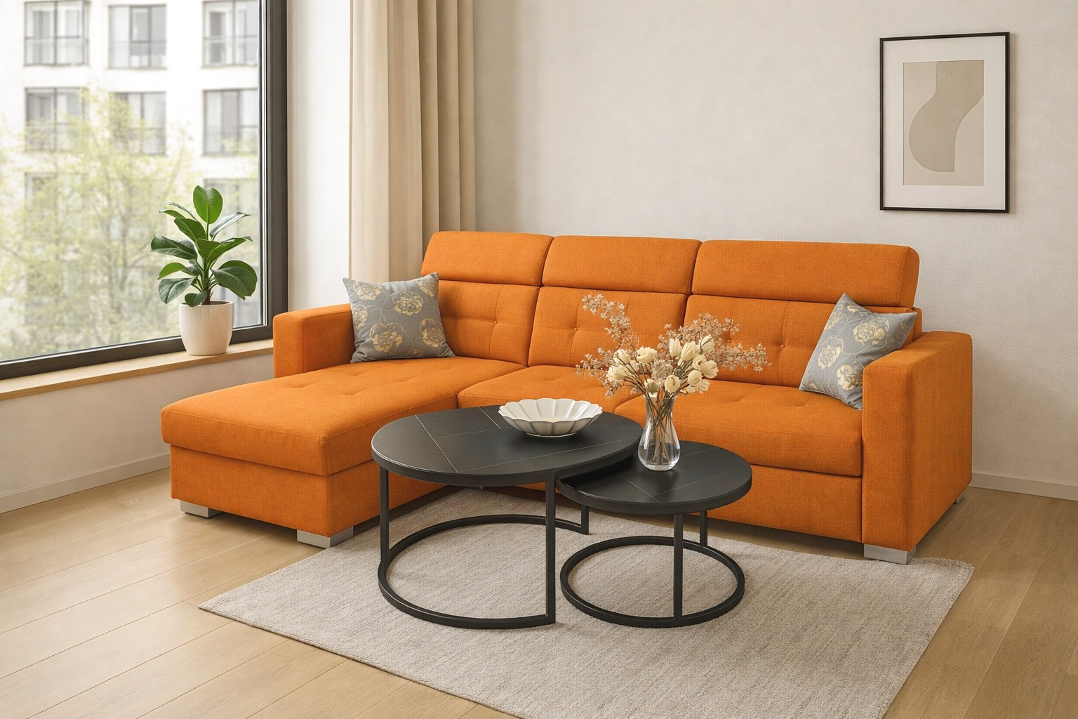 Sedací souprava Zara osloví každého, kdo preferuje moderní vzhled a zároveň pohodlí a praktičnost. Je potažena kvalitní potahovou látkou s kontrastním prošitím. Díky svým rozměrům je vhodná i do menších pokojů. Pro případ, že se návštěva zdrží přes noc, je sedací souprava vybavena rozkladem, díky kterému sedací soupravu jednoduše přeměníte v prostorné lůžko. Sedací souprava má praktický úložný prostor, který můžete využít např, na lůžkoviny. Pohodlí při sezení zajišťuje výplň sedáků, kterou tvoří kombinace pružin faliste s kvalitní PUR pěnou. Komfort a pohodlí při odpočinku zvyšuje polohovací opěrka hlavy. Sedací soupravu nabízíme na objednávku i v jiných potahových látkách, v levém i pravém provedení. K sedací soupravě je možno dokoupit křeslo a malý nebo velký taburet. Záda sedačky jsou čalouněná, je tedy vhodná i pro použití v prostoru.