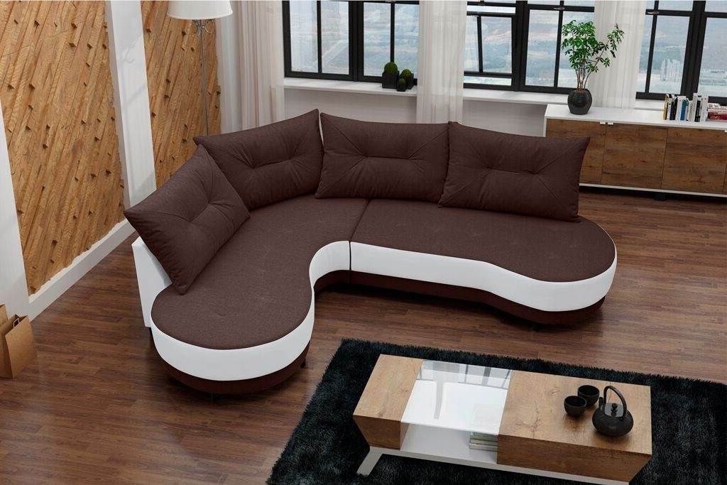 Rohová sedací souprava Abbey L tm.hnědá/bílá