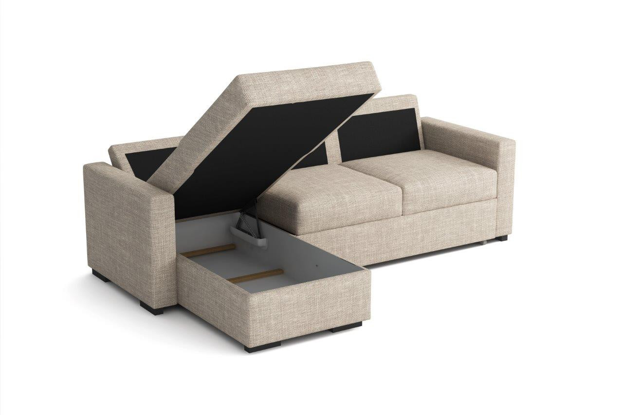 Tomáš je moderní rohová sedací souprava s nadčasovým designem. Její předností je pohodlí, praktičnost a univerzální použití. Můžete si ji podle potřeby sestavit jako levou nebo pravou, což je výhoda při zařizování obývacího pokoje. Nemusíte přemýšlet do jakého rohu postavíte sedací soupravu, jednoduše ji podle potřeby přizpůsobíte. Pohodlí při sezení zajišťuje kombinace pružin faliste s kvalitní PUR pěnou a velké opěrné polštáře, které jsou odnímatelné, takže si je můžete přizpůsobit svým potřebám. Praktickou stránkou sedací soupravy je úložný prostor a možnost rozložení k občasnému přespání Vaší návštěvy. Sedací souprava je potažena látkou jednobarevnou látkou a v nabídce najdete více barevných variant. V ceně sedací soupravy jsou 3 velké opěrné polštáře. Ostatní vyobrazené dekorace nejsou v ceně. Zobrazení barev produktu na fotografii se může nepatrně lišit od skutečnosti.