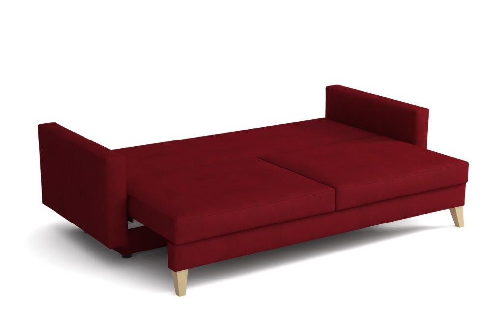Pohovka Marina je krásným elegantním kouskem s nádechem RETRO designu a výborně zapadne do každého interiéru. Retro design podtrhují zešikmené dřevěné nohy a látkové knoflíky na opěrce. Pohovka je rozkládací a samozřejmostí je i nepostradatelný úložný prostor. Jednoduchým rozložením pomocí automatu vznikne dostatečně prostorné lůžko občasnému přespání Vaší návštěvy. Výpň sedáku tvoří vlnité pružiny v kombinaci s pružinami bonell a kvalitní PUR pěnou. Pohovka je celočalouněná, takže ji můžete umístit i do prostoru. Výborně se hodí do obývacího pokoje, do pracovny či pokoje pro hosty. Pohovku nabízíme v několika trendy barvách. Vyobrazené dopňky a dekorace nejsou v ceně. Zobrazení barev produktu na fotograii se může nepatrně lišit od skutečnosti.