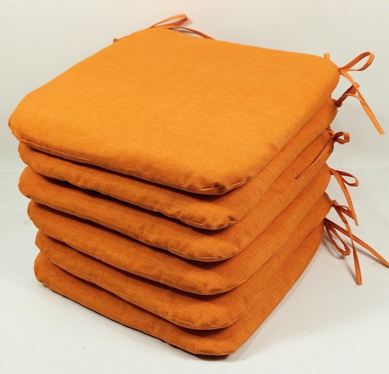 Set šesti kusů univerzálních sedáků. | Velikost sedáku je 40x40 cm. Výplň sedáku je polyesterové rouno. Sedák je opatřen tkanicemi pro snadné uchycení k židli. Tkanice jsou vyrobeny ze stejné látky jako sedáky.