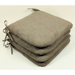 Set čtyřech kusů univerzálních sedáků. | Velikost sedáku je 40x40 cm. Výplň sedáku je polyesterové rouno. Sedák je opatřen tkanicemi pro snadné uchycení k židli. Tkanice jsou vyrobeny ze stejné látky jako sedáky.