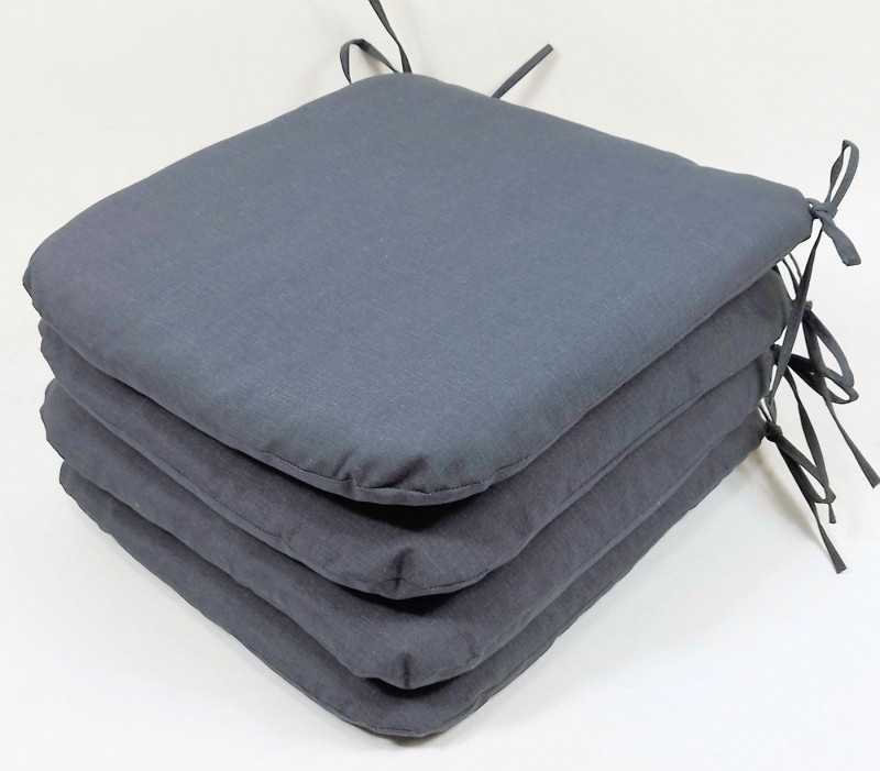 Set čtyřech kusů univerzálních sedáků. | Velikost sedáku je 40x40 cm. Výplň sedáku je polyesterové rouno. Sedák je opatřen tkanicemi pro snadné uchycení k židli. Tkanice jsou vyrobeny ze stejné látky jako sedáky.