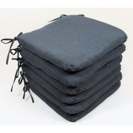 Set šesti kusů univerzálních sedáků. | Velikost sedáku je 40x40 cm. Výplň sedáku je polyesterové rouno. Sedák je opatřen tkanicemi pro snadné uchycení k židli. Tkanice jsou vyrobeny ze stejné látky jako sedáky.