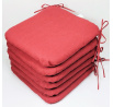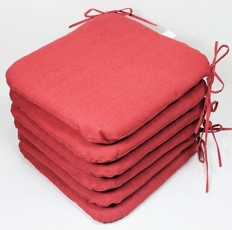 Set šesti kusů univerzálních sedáků. | Velikost sedáku je 40x40 cm. Výplň sedáku je polyesterové rouno. Sedák je opatřen tkanicemi pro snadné uchycení k židli. Tkanice jsou vyrobeny ze stejné látky jako sedáky.