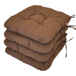 Set 4 kusů univerzálních sedáků plněných drceným molitanem. | Praktický sedák na židli plněný drceným molitanem. Díky tomu si sedák zachová svůj tvar i výšku po celou dobu používání. Sedák má čtvercový tvar se zaoblenými rohy. Velikost sedáku je 39x39 cm. Výška sedáku je přibližně 7 cm. Sedák je opatřen praktickými šňůrkami k přichycení k židli. Sedák můžete použít na běžné židle, plastový nábytek nebo zahradní nábytek. Šňůrky pro upevnění k židli jsou vyrobeny přímo z dané látky sedáku, čímž je zajištěna sladěnost šňůrek s celým sedákem a výsledný efekt je dokonalý. Délka šňůrek je 30 cm a ve dvou rozích je všito po dvou šňůrkách pro snadné přichycení sedáku k židli. Šňůrky jsou tak dostatečně dlouhé i pro případ, kdy je potřebujete uvázat až kolem opěradla ( zezadu za židlí). Další výhodou je, že naše sedáky jsou pratelné na 40 stupňů Celsia.