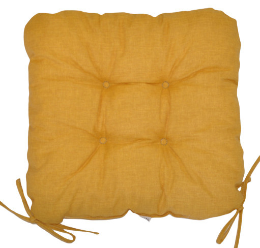 Univerzální sedák plněný drceným molitanem. | Praktický sedák na židli plněný drceným molitanem. Díky tomu si sedák zachová svůj tvar i výšku po celou dobu používání. Sedák má čtvercový tvar se zaoblenými rohy. Velikost sedáku je 39x39 cm. Výška sedáku je přibližně 7 cm. Sedák je opatřen praktickými šňůrkami k přichycení k židli. Sedák můžete použít na běžné židle, plastový nábytek nebo zahradní nábytek. Šňůrky pro upevnění k židli jsou vyrobeny přímo z dané látky sedáku, čímž je zajištěna sladěnost šňůrek s celým sedákem a výsledný efekt je dokonalý. Délka šňůrek je 30 cm a ve dvou rozích je všito po dvou šňůrkách pro snadné přichycení sedáku k židli. Šňůrky jsou tak dostatečně dlouhé i pro případ, kdy je potřebujete uvázat až kolem opěradla ( zezadu za židlí). Další výhodou je, že naše sedáky jsou pratelné na 40 stupňů Celsia.