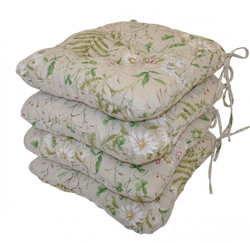 Set 4 kusů univerzálních sedáků plněných drceným molitanem. | Praktický sedák na židli plněný drceným molitanem. Díky tomu si sedák zachová svůj tvar i výšku po celou dobu používání. Sedák má čtvercový tvar se zaoblenými rohy. Velikost sedáku je 39x39 cm. Výška sedáku je přibližně 7 cm. Sedák je opatřen praktickými šňůrkami k přichycení k židli. Sedák můžete použít na běžné židle, plastový nábytek nebo zahradní nábytek. Šňůrky pro upevnění k židli jsou vyrobeny přímo z dané látky sedáku, čímž je zajištěna sladěnost šňůrek s celým sedákem a výsledný efekt je dokonalý. Délka šňůrek je 30 cm a ve dvou rozích je všito po dvou šňůrkách pro snadné přichycení sedáku k židli. Šňůrky jsou tak dostatečně dlouhé i pro případ, kdy je potřebujete uvázat až kolem opěradla ( zezadu za židlí). Další výhodou je, že naše sedáky jsou pratelné na 40 stupňů Celsia.