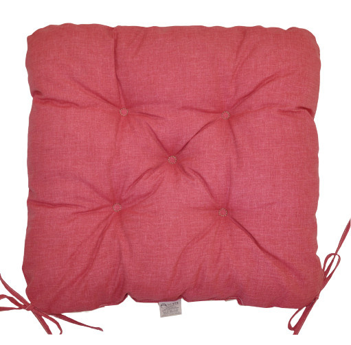 Set čtyřech kusů univerzálních sedáků plněných drceným molitanem. | Praktický sedák na židli plněný drceným molitanem. Díky tomu si sedák zachová svůj tvar i výšku po celou dobu používání. Sedák má čtvercový tvar se zaoblenými rohy. Velikost sedáku je 42x42 cm. Výška sedáku je přibližně 7 cm. Sedák je opatřen praktickými šňůrkami k přichycení k židli. Sedák můžete použít na běžné židle, plastový nábytek nebo zahradní nábytek. Šňůrky pro upevnění k židli jsou vyrobeny přímo z dané látky sedáku, čímž je zajištěna sladěnost šňůrek s celým sedákem a výsledný efekt je dokonalý. Délka šňůrek je 30 cm a ve dvou rozích je všito po dvou šňůrkách pro snadné přichycení sedáku k židli. Šňůrky jsou tak dostatečně dlouhé i pro případ, kdy je potřebujete uvázat až kolem opěradla ( zezadu za židlí). Další výhodou je, že naše sedáky jsou pratelné na 40 stupňů Celsia.