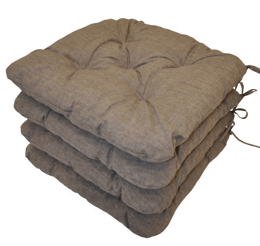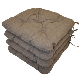Set čtyřech kusů univerzálních sedáků plněných drceným molitanem. | Praktický sedák na židli plněný drceným molitanem. Díky tomu si sedák zachová svůj tvar i výšku po celou dobu používání. Sedák má čtvercový tvar se zaoblenými rohy. Velikost sedáku je 42x42 cm. Výška sedáku je přibližně 7 cm. Sedák je opatřen praktickými šňůrkami k přichycení k židli. Sedák můžete použít na běžné židle, plastový nábytek nebo zahradní nábytek. Šňůrky pro upevnění k židli jsou vyrobeny přímo z dané látky sedáku, čímž je zajištěna sladěnost šňůrek s celým sedákem a výsledný efekt je dokonalý. Délka šňůrek je 30 cm a ve dvou rozích je všito po dvou šňůrkách pro snadné přichycení sedáku k židli. Šňůrky jsou tak dostatečně dlouhé i pro případ, kdy je potřebujete uvázat až kolem opěradla ( zezadu za židlí). Další výhodou je, že naše sedáky jsou pratelné na 40 stupňů Celsia.
