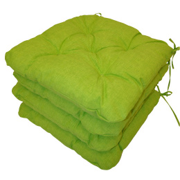 Set čtyřech kusů univerzálních sedáků plněných drceným molitanem. | Praktický sedák na židli plněný drceným molitanem. Díky tomu si sedák zachová svůj tvar i výšku po celou dobu používání. Sedák má čtvercový tvar se zaoblenými rohy. Velikost sedáku je 42x42 cm. Výška sedáku je přibližně 7 cm. Sedák je opatřen praktickými šňůrkami k přichycení k židli. Sedák můžete použít na běžné židle, plastový nábytek nebo zahradní nábytek. Šňůrky pro upevnění k židli jsou vyrobeny přímo z dané látky sedáku, čímž je zajištěna sladěnost šňůrek s celým sedákem a výsledný efekt je dokonalý. Délka šňůrek je 30 cm a ve dvou rozích je všito po dvou šňůrkách pro snadné přichycení sedáku k židli. Šňůrky jsou tak dostatečně dlouhé i pro případ, kdy je potřebujete uvázat až kolem opěradla ( zezadu za židlí). Další výhodou je, že naše sedáky jsou pratelné na 40 stupňů Celsia.