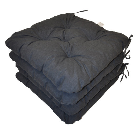 Set čtyřech kusů univerzálních sedáků plněných drceným molitanem. | Praktický sedák na židli plněný drceným molitanem. Díky tomu si sedák zachová svůj tvar i výšku po celou dobu používání. Sedák má čtvercový tvar se zaoblenými rohy. Velikost sedáku je 42x42 cm. Výška sedáku je přibližně 7 cm. Sedák je opatřen praktickými šňůrkami k přichycení k židli. Sedák můžete použít na běžné židle, plastový nábytek nebo zahradní nábytek. Šňůrky pro upevnění k židli jsou vyrobeny přímo z dané látky sedáku, čímž je zajištěna sladěnost šňůrek s celým sedákem a výsledný efekt je dokonalý. Délka šňůrek je 30 cm a ve dvou rozích je všito po dvou šňůrkách pro snadné přichycení sedáku k židli. Šňůrky jsou tak dostatečně dlouhé i pro případ, kdy je potřebujete uvázat až kolem opěradla ( zezadu za židlí). Další výhodou je, že naše sedáky jsou pratelné na 40 stupňů Celsia.
