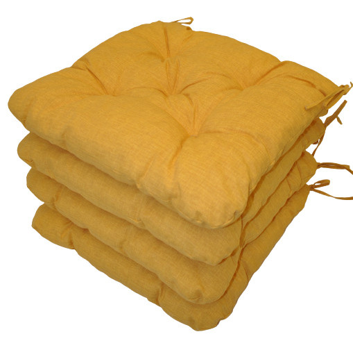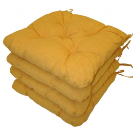 Set čtyřech kusů univerzálních sedáků plněných drceným molitanem. | Praktický sedák na židli plněný drceným molitanem. Díky tomu si sedák zachová svůj tvar i výšku po celou dobu používání. Sedák má čtvercový tvar se zaoblenými rohy. Velikost sedáku je 42x42 cm. Výška sedáku je přibližně 7 cm. Sedák je opatřen praktickými šňůrkami k přichycení k židli. Sedák můžete použít na běžné židle, plastový nábytek nebo zahradní nábytek. Šňůrky pro upevnění k židli jsou vyrobeny přímo z dané látky sedáku, čímž je zajištěna sladěnost šňůrek s celým sedákem a výsledný efekt je dokonalý. Délka šňůrek je 30 cm a ve dvou rozích je všito po dvou šňůrkách pro snadné přichycení sedáku k židli. Šňůrky jsou tak dostatečně dlouhé i pro případ, kdy je potřebujete uvázat až kolem opěradla ( zezadu za židlí). Další výhodou je, že naše sedáky jsou pratelné na 40 stupňů Celsia.