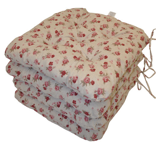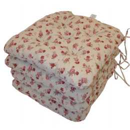 Set čtyřech kusů univerzálních sedáků plněných drceným molitanem. | Praktický sedák na židli plněný drceným molitanem. Díky tomu si sedák zachová svůj tvar i výšku po celou dobu používání. Sedák má čtvercový tvar se zaoblenými rohy. Velikost sedáku je 42x42 cm. Výška sedáku je přibližně 7 cm. Sedák je opatřen praktickými šňůrkami k přichycení k židli. Sedák můžete použít na běžné židle, plastový nábytek nebo zahradní nábytek. Šňůrky pro upevnění k židli jsou vyrobeny přímo z dané látky sedáku, čímž je zajištěna sladěnost šňůrek s celým sedákem a výsledný efekt je dokonalý. Délka šňůrek je 30 cm a ve dvou rozích je všito po dvou šňůrkách pro snadné přichycení sedáku k židli. Šňůrky jsou tak dostatečně dlouhé i pro případ, kdy je potřebujete uvázat až kolem opěradla ( zezadu za židlí). Další výhodou je, že naše sedáky jsou pratelné na 40 stupňů Celsia.