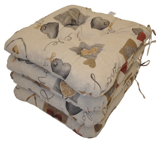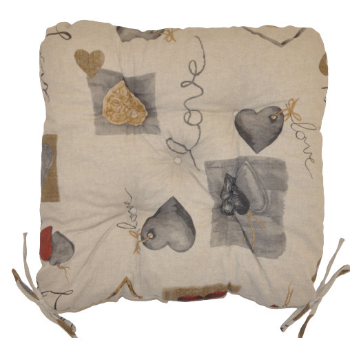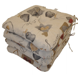 Set čtyřech kusů univerzálních sedáků plněných drceným molitanem. | Praktický sedák na židli plněný drceným molitanem. Díky tomu si sedák zachová svůj tvar i výšku po celou dobu používání. Sedák má čtvercový tvar se zaoblenými rohy. Velikost sedáku je 42x42 cm. Výška sedáku je přibližně 7 cm. Sedák je opatřen praktickými šňůrkami k přichycení k židli. Sedák můžete použít na běžné židle, plastový nábytek nebo zahradní nábytek. Šňůrky pro upevnění k židli jsou vyrobeny přímo z dané látky sedáku, čímž je zajištěna sladěnost šňůrek s celým sedákem a výsledný efekt je dokonalý. Délka šňůrek je 30 cm a ve dvou rozích je všito po dvou šňůrkách pro snadné přichycení sedáku k židli. Šňůrky jsou tak dostatečně dlouhé i pro případ, kdy je potřebujete uvázat až kolem opěradla ( zezadu za židlí). Další výhodou je, že naše sedáky jsou pratelné na 40 stupňů Celsia.
