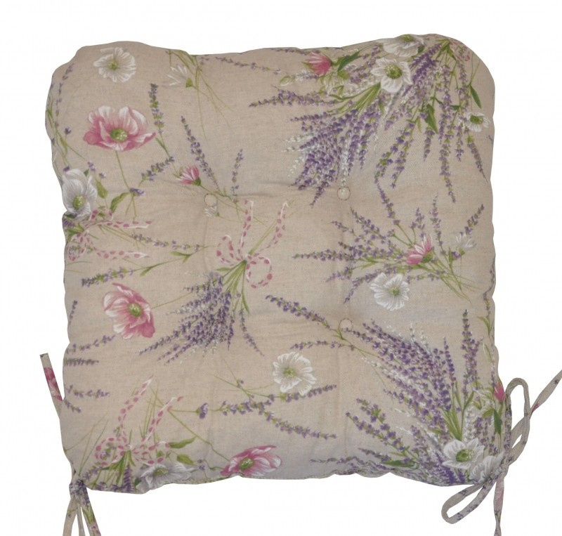 Univerzální sedák plněný drceným molitanem. | Praktický sedák na židli plněný drceným molitanem. Díky tomu si sedák zachová svůj tvar i výšku po celou dobu používání. Sedák má čtvercový tvar se zaoblenými rohy. Velikost sedáku je 39x39 cm. Výška sedáku je přibližně 7 cm. Sedák je opatřen praktickými šňůrkami k přichycení k židli. Sedák můžete použít na běžné židle, plastový nábytek nebo zahradní nábytek. Šňůrky pro upevnění k židli jsou vyrobeny přímo z dané látky sedáku, čímž je zajištěna sladěnost šňůrek s celým sedákem a výsledný efekt je dokonalý. Délka šňůrek je 30 cm a ve dvou rozích je všito po dvou šňůrkách pro snadné přichycení sedáku k židli. Šňůrky jsou tak dostatečně dlouhé i pro případ, kdy je potřebujete uvázat až kolem opěradla ( zezadu za židlí). Další výhodou je, že naše sedáky jsou pratelné na 40 stupňů Celsia.
