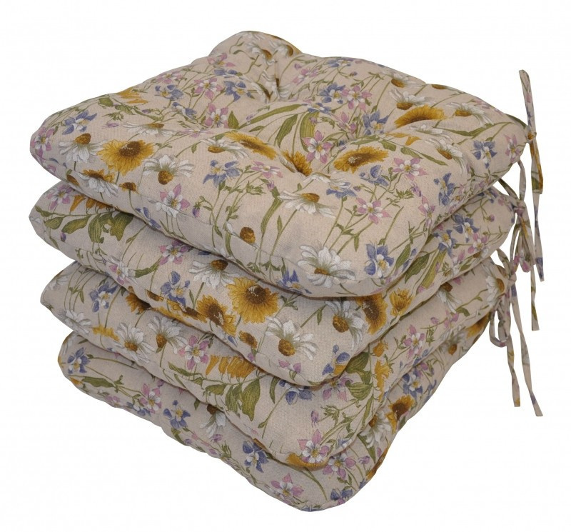 Set 4 kusů univerzálních sedáků plněných drceným molitanem. | Praktický sedák na židli plněný drceným molitanem. Díky tomu si sedák zachová svůj tvar i výšku po celou dobu používání. Sedák má čtvercový tvar se zaoblenými rohy. Velikost sedáku je 39x39 cm. Výška sedáku je přibližně 7 cm. Sedák je opatřen praktickými šňůrkami k přichycení k židli. Sedák můžete použít na běžné židle, plastový nábytek nebo zahradní nábytek. Šňůrky pro upevnění k židli jsou vyrobeny přímo z dané látky sedáku, čímž je zajištěna sladěnost šňůrek s celým sedákem a výsledný efekt je dokonalý. Délka šňůrek je 30 cm a ve dvou rozích je všito po dvou šňůrkách pro snadné přichycení sedáku k židli. Šňůrky jsou tak dostatečně dlouhé i pro případ, kdy je potřebujete uvázat až kolem opěradla ( zezadu za židlí). Další výhodou je, že naše sedáky jsou pratelné na 40 stupňů Celsia.
