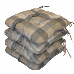 Set 4 kusů univerzálních sedáků plněných drceným molitanem. | Praktický sedák na židli plněný drceným molitanem. Díky tomu si sedák zachová svůj tvar i výšku po celou dobu používání. Sedák má čtvercový tvar se zaoblenými rohy. Velikost sedáku je 39x39 cm. Výška sedáku je přibližně 7 cm. Sedák je opatřen praktickými šňůrkami k přichycení k židli. Sedák můžete použít na běžné židle, plastový nábytek nebo zahradní nábytek. Šňůrky pro upevnění k židli jsou vyrobeny přímo z dané látky sedáku, čímž je zajištěna sladěnost šňůrek s celým sedákem a výsledný efekt je dokonalý. Délka šňůrek je 30 cm a ve dvou rozích je všito po dvou šňůrkách pro snadné přichycení sedáku k židli. Šňůrky jsou tak dostatečně dlouhé i pro případ, kdy je potřebujete uvázat až kolem opěradla ( zezadu za židlí). Další výhodou je, že naše sedáky jsou pratelné na 40 stupňů Celsia.