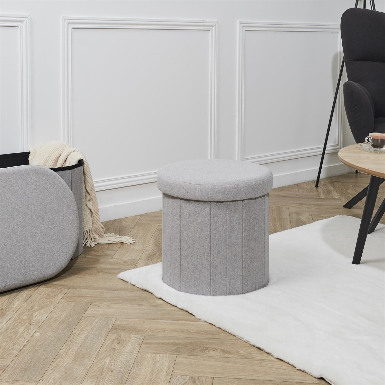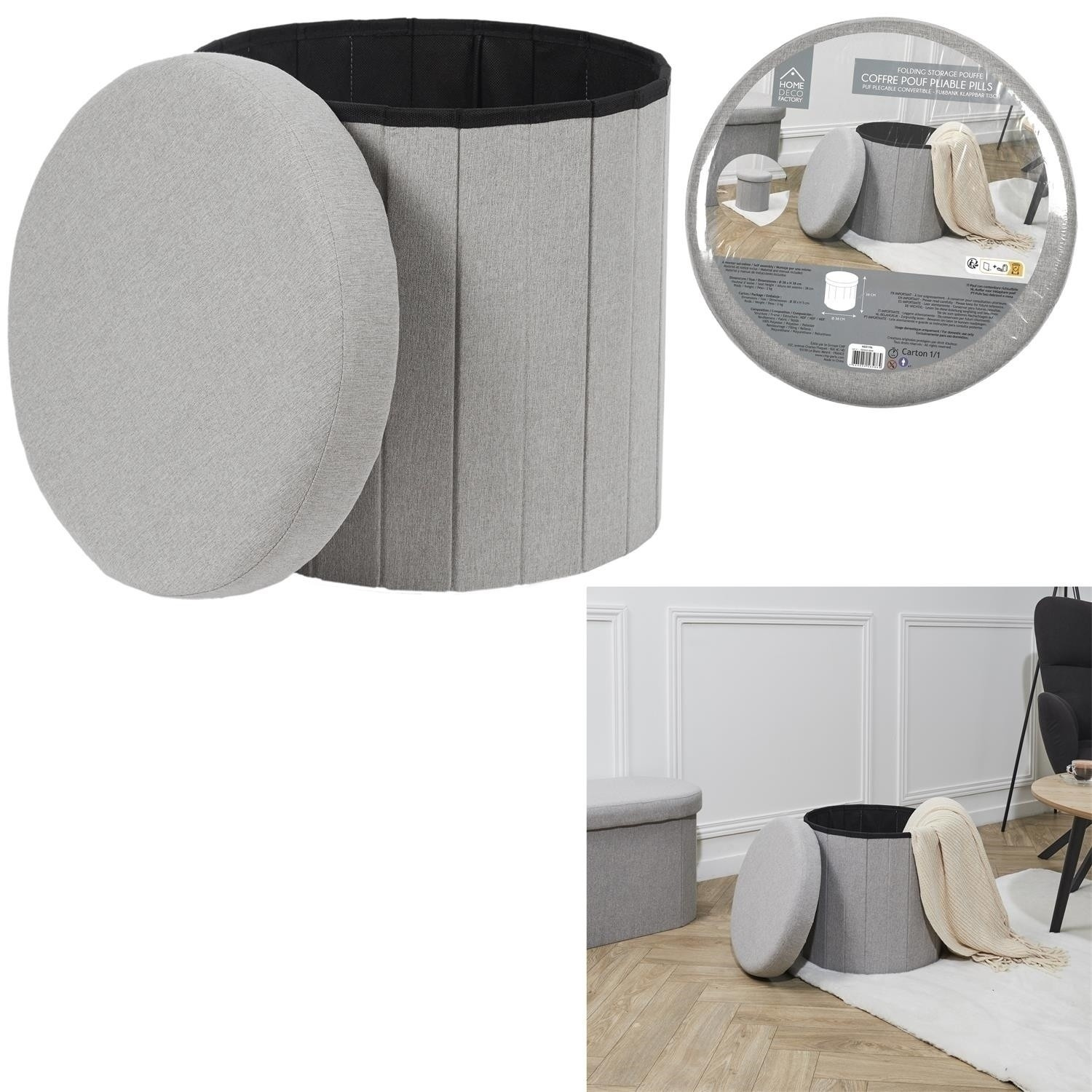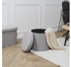 Skládací puf je ideální nábytek do menší předsíně. Stolička plní funkci nejen sedátka, ale také úložného prostoru na boty, doplňky, deky nebo polštáře a dokonce i hračky. Díky otevíratelnému sedáku můžeme do pufu schovat předměty, jejichž přítomnost na povrchu není nutná. Skládací puf je vyroben z MDF, čalounické pěny a látky 100% polyester. Skládací základna umožňuje schovat pufu, když ji dočasně nepotřebujeme používat.