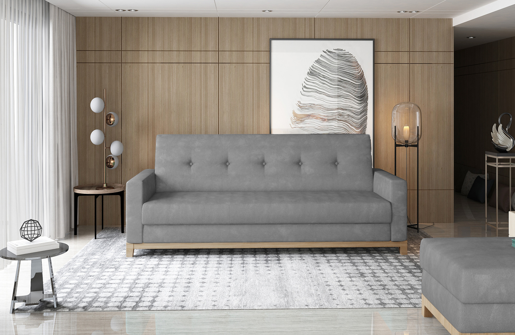 Pohovka SELENE je navržena s ohledem na moderní estetiku a praktičnost. Její potah dodává interiéru sofistikovaný vzhled, zatímco bukové detaily přinášejí přírodní teplo a harmonii. Tato kombinace materiálů zajišťuje, že pohovka bude nejen krásná na pohled, ale také odolná a snadno udržovatelná.
