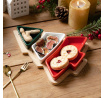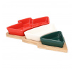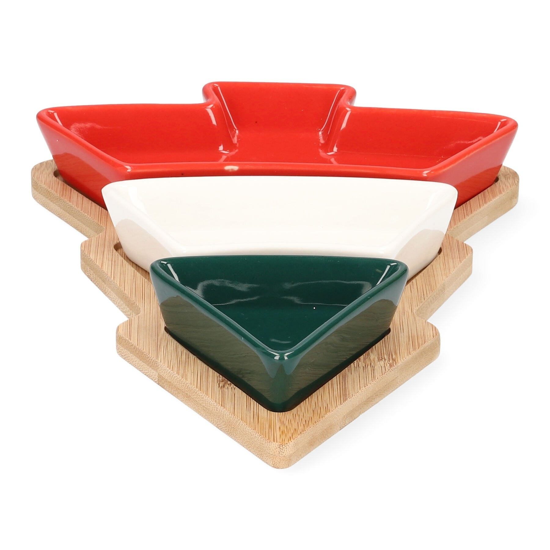 Sada se skládá ze tří mís v červené, bílé a zelené barvě. Uspořádány vedle sebe na bambusovém podnosu, tvoří tvar vánočního stromku o rozměrech 28x21 cm. Stojan je činí pohodlnými k použití a možnost jejich rozložení usnadňuje čištění.